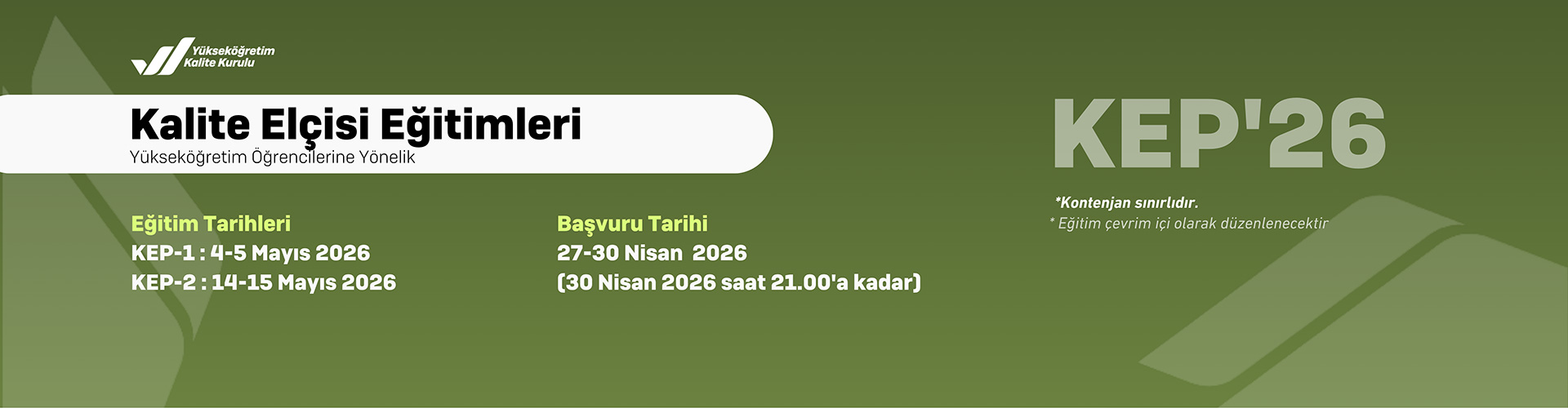 Kalite Elçisi Eğitimleri (KEP’26) Duyurusu Sevgili Yükseköğretim Öğrencileri, Yükseköğretim Kalite...